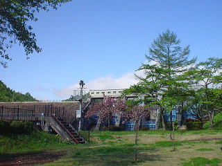 桜散る暖かい季節、遠くに工事する音が聞こえます。 ポカポカ陽気に、何故かお弁当を広げたくなりました。 ←胆沢ダムが完成すれば、このスペギの位置も水没 します。今、自分が立っている場所は展望所ですが、 この場所も水没します。老朽化した石渕ダムですが、 建設当初は日本で初めてのロックフィルダムでした。 日本最大のロックフィルダムは建設中の胆沢ダムね。 |