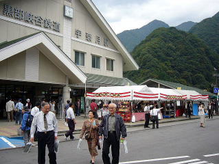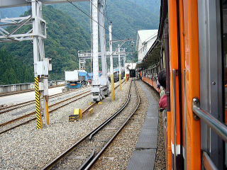 | 重連で運行しています | 標高599mに位置する欅平(けやきだいら)駅 |