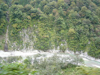| 宇奈月(うなづき)駅から欅平(けやきだいら)駅まで20.1Kmのレールを約90分かけてトロッコ列車で移動します。 トロッコ列車は黒部渓谷鉄道の愛称です。開放感あふれる車内から大自然の風景を満喫します。 |