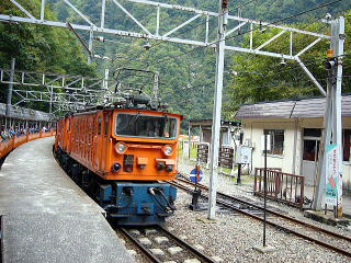 もともとは黒部川電源開発のための資材運搬用の鉄道でありました。いわゆる業務用ですね。 |