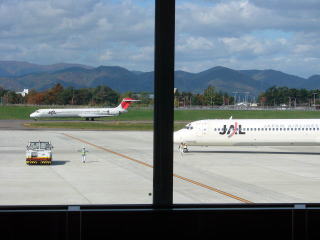 | 離陸を待つ名古屋行き(手前) | MD-90は新千歳へ |