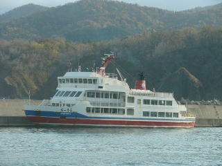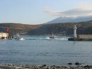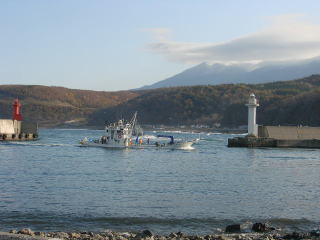 | 船が入港してきました | きっ水ギリギリ、豊漁ですか! |