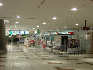 | 網走より、ゆっくり女満別空港へ移動します。 空港内は静かでした。しかし、いきなり大混雑に...。 そう、大都市からの修学旅行客で埋め尽くされます。驚いた!。 |