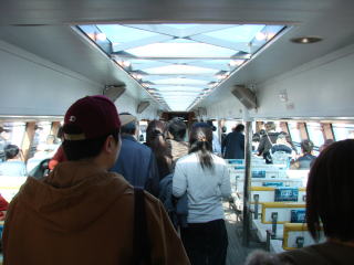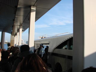 大勢の人たちが下船します