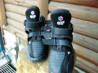 シューズは...スキー靴みたい(笑)。