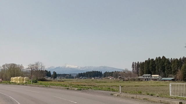 | 市内を西へ、焼石連峰が見えてきました | |