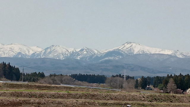| 冬明けしても、まだまだ厳しい表情の焼石連峰 | |
